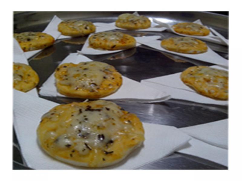 Mini pizza de queijo / calabresa com queijo.